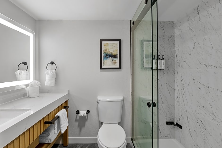 1 King One bedroom Suite Comm Mob Access Rollin Shower is 398 square feet and includes a king-size bed 150-183 width.